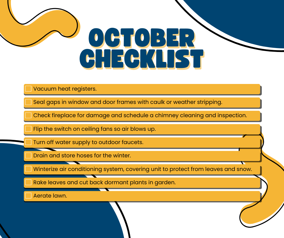- Clean gutters after leaves have fallen. Make sure downspouts are in good repair.